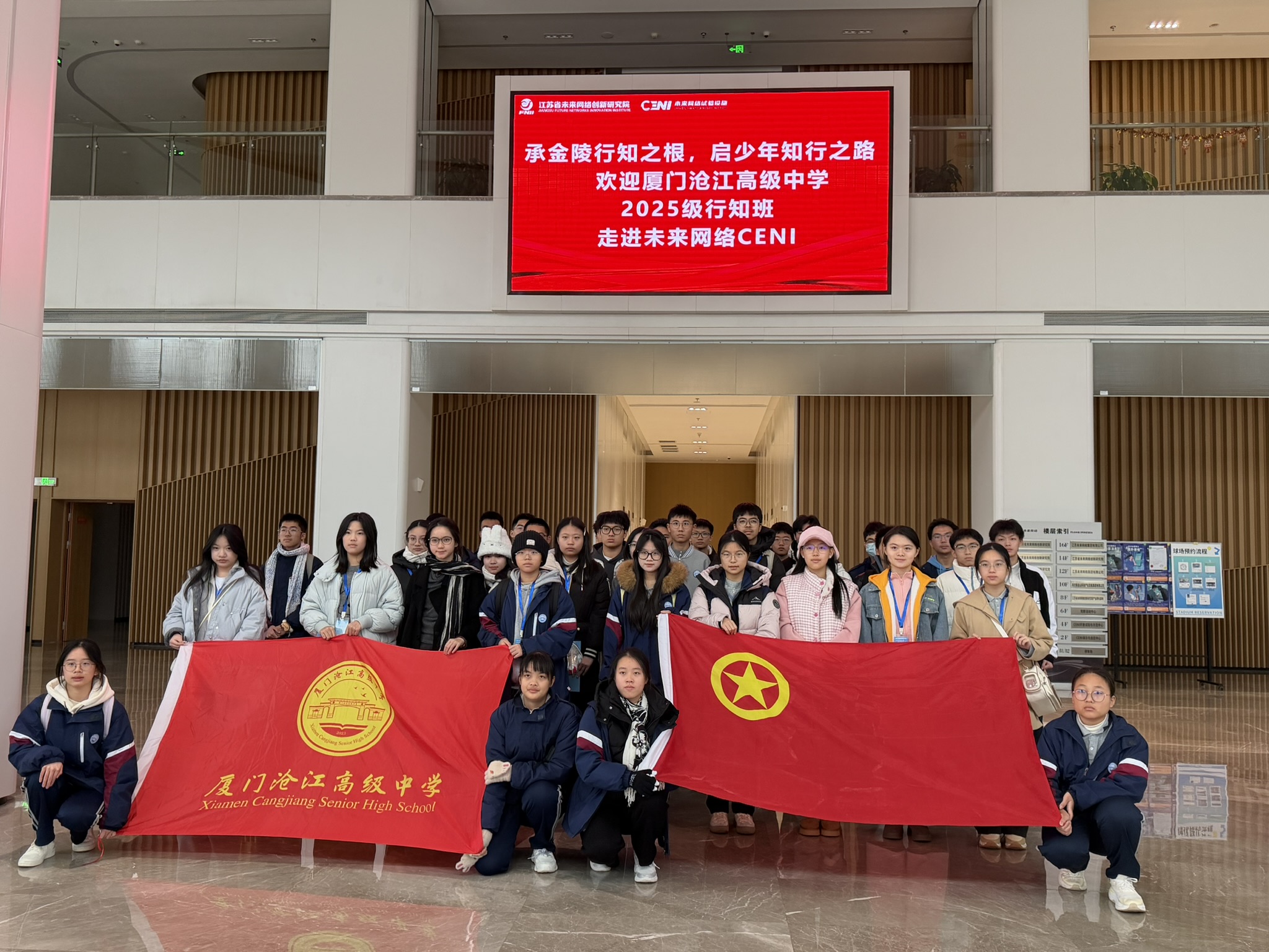 2月6日,厦门沧江高级中学2025级行知班走进江苏省未来网络创新研究院。师生们先后在CENI总控中心、工业互联网全要素互联示范环境展厅参观并聆听科普讲解,近距离了解未来网络试验设施CENI的建设、应用与创新成果。